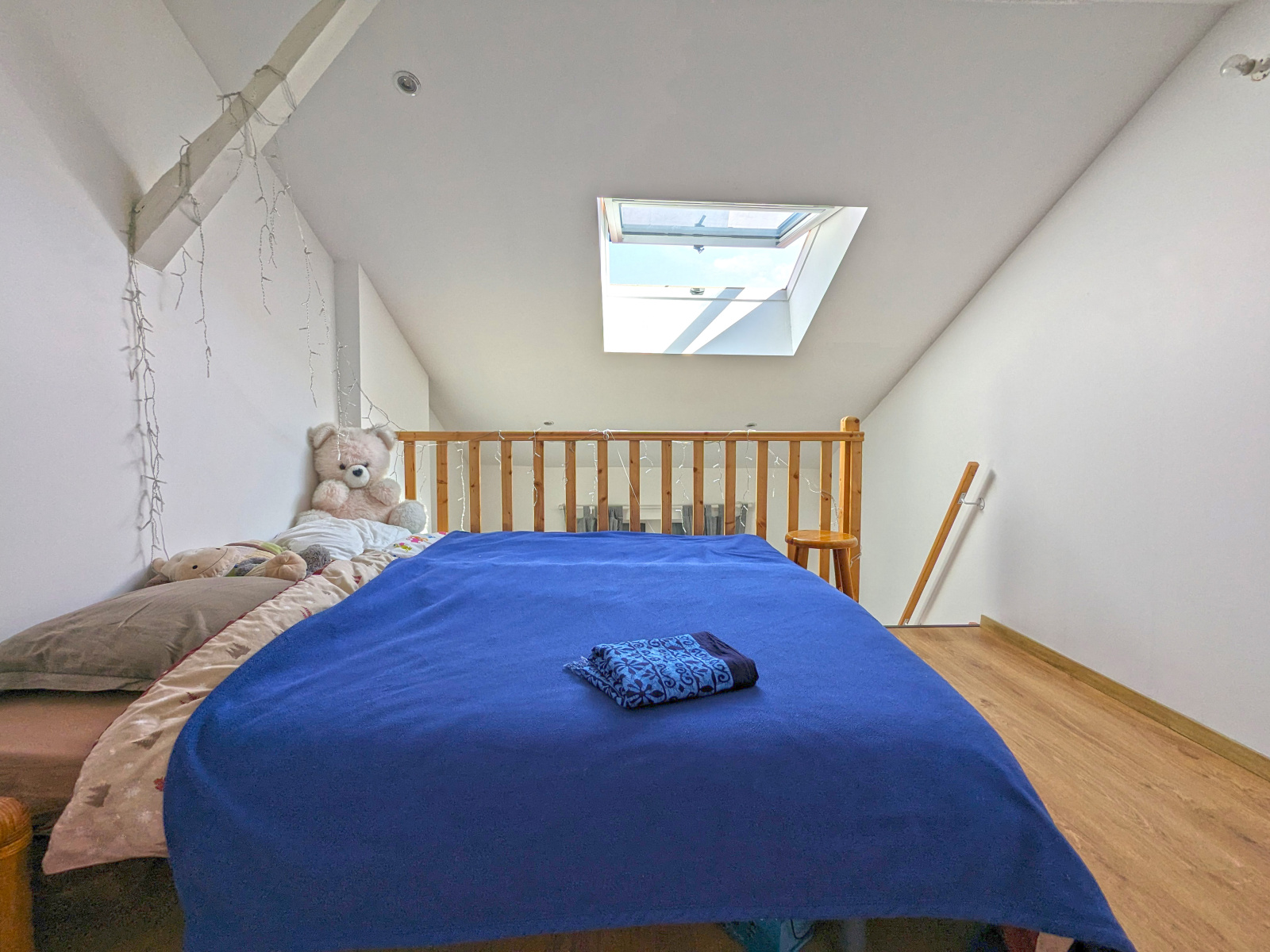 Il se compose d’une entrée avec grand placard technique permettant entre autre, l’accueil d’une machine à laver, d’une pièce de vie lumineuse avec coin cuisine, d’un bel espace nuit en mezzanine, et d’une salle d’eau avec WC.