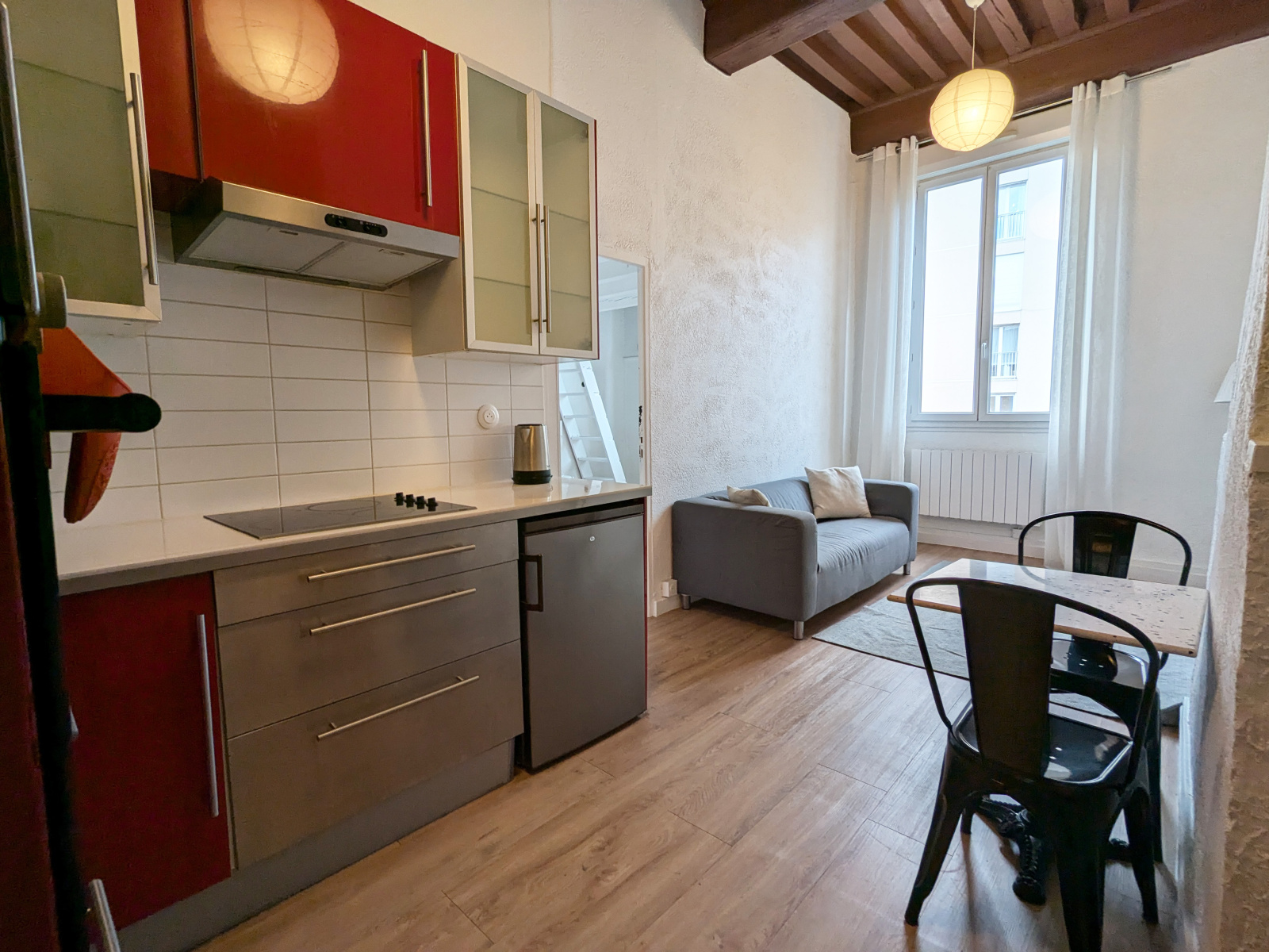 Croix-Rousse, proche hôpital, très beau T2 + Mezzanine de 32 m² Boutin et 39 m² au sol au 4ème étage avec ascenseur.