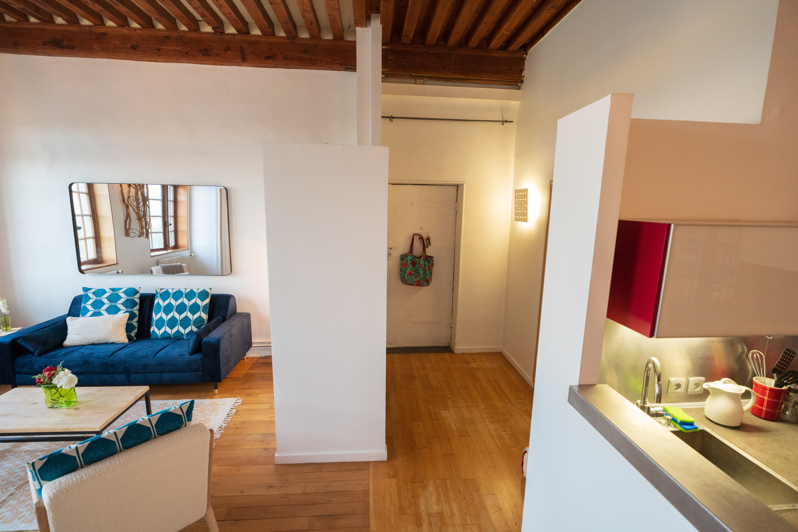 Situé au 2ème étage d’un immeuble canut, cet appartement traversant Est-Ouest se compose d’un large espace de vie avec salon, séjour et cuisine ouverte équipée.