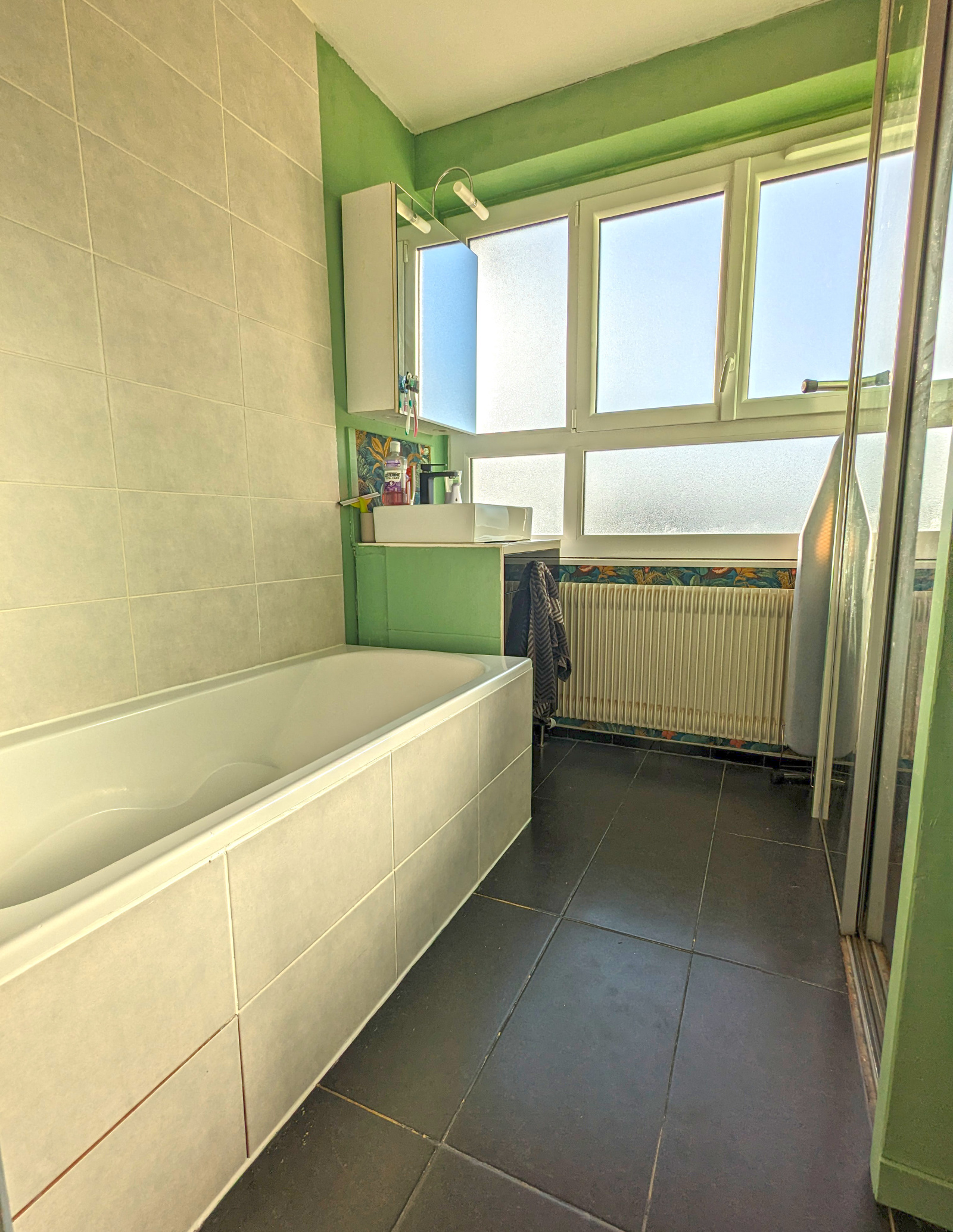 Il se compose d’une entrée avec placard dressing, d’un salon séjour lumineux orienté Sud avec balcon, d’une cuisine équipée indépendante ouvrant sur un second balcon, de deux chambres spacieuses avec chacune leur grand placard, d’une salle de bain ainsi que de WC séparés.