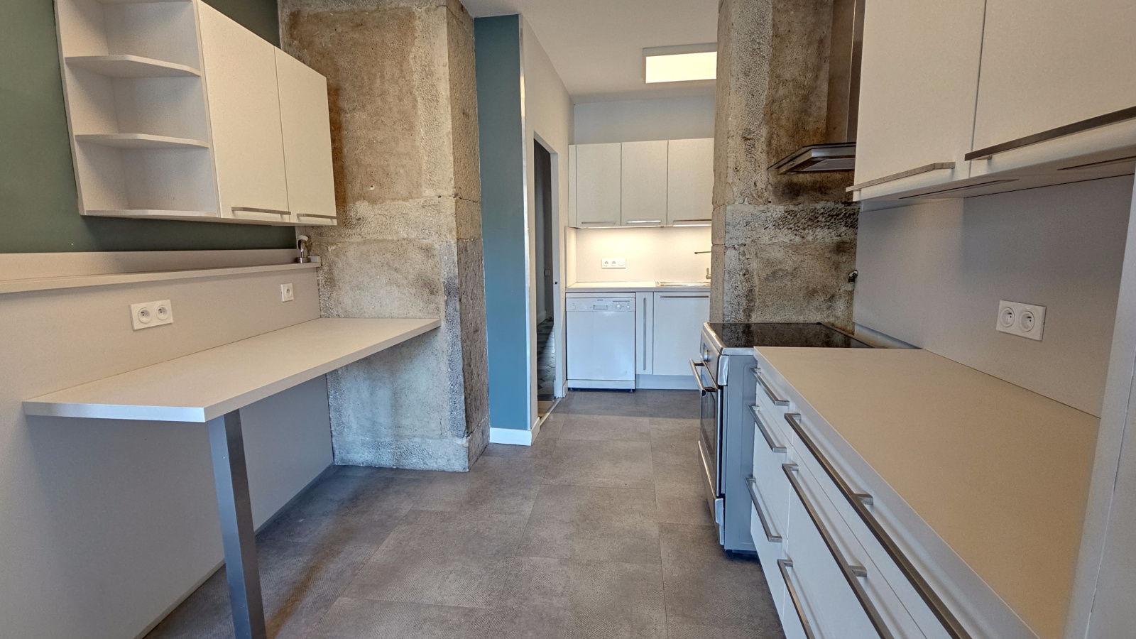 Ici le charme de l’ancien opère (haut plafond à la française, cheminée, parquets, pierres apparentes) et se conjugue avec de beaux volumes très lumineux et une superbe vue.