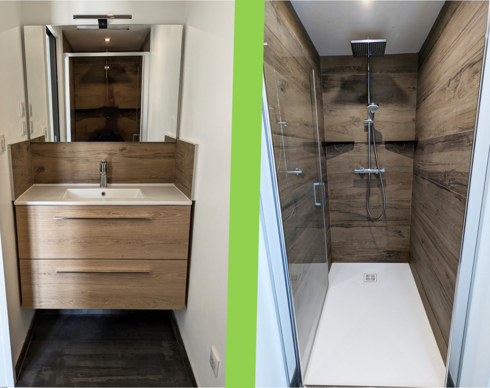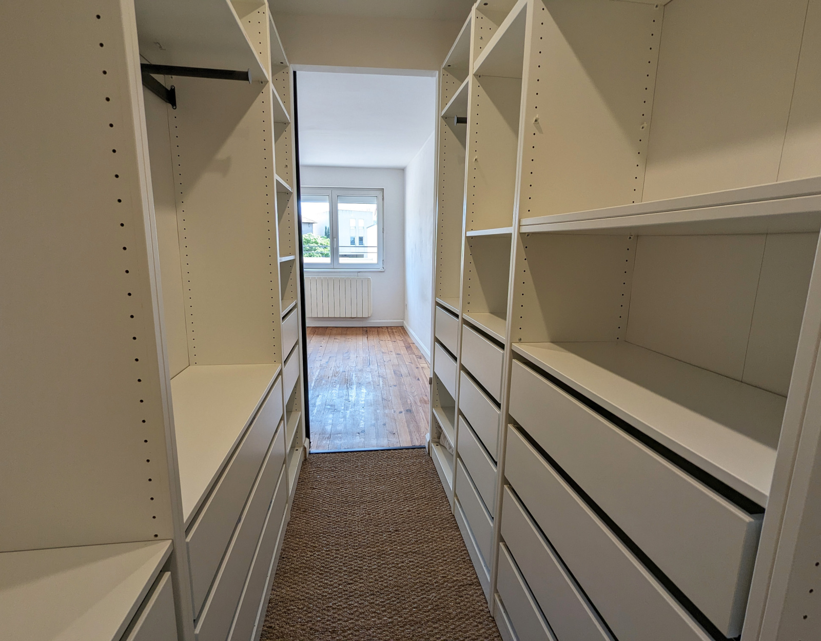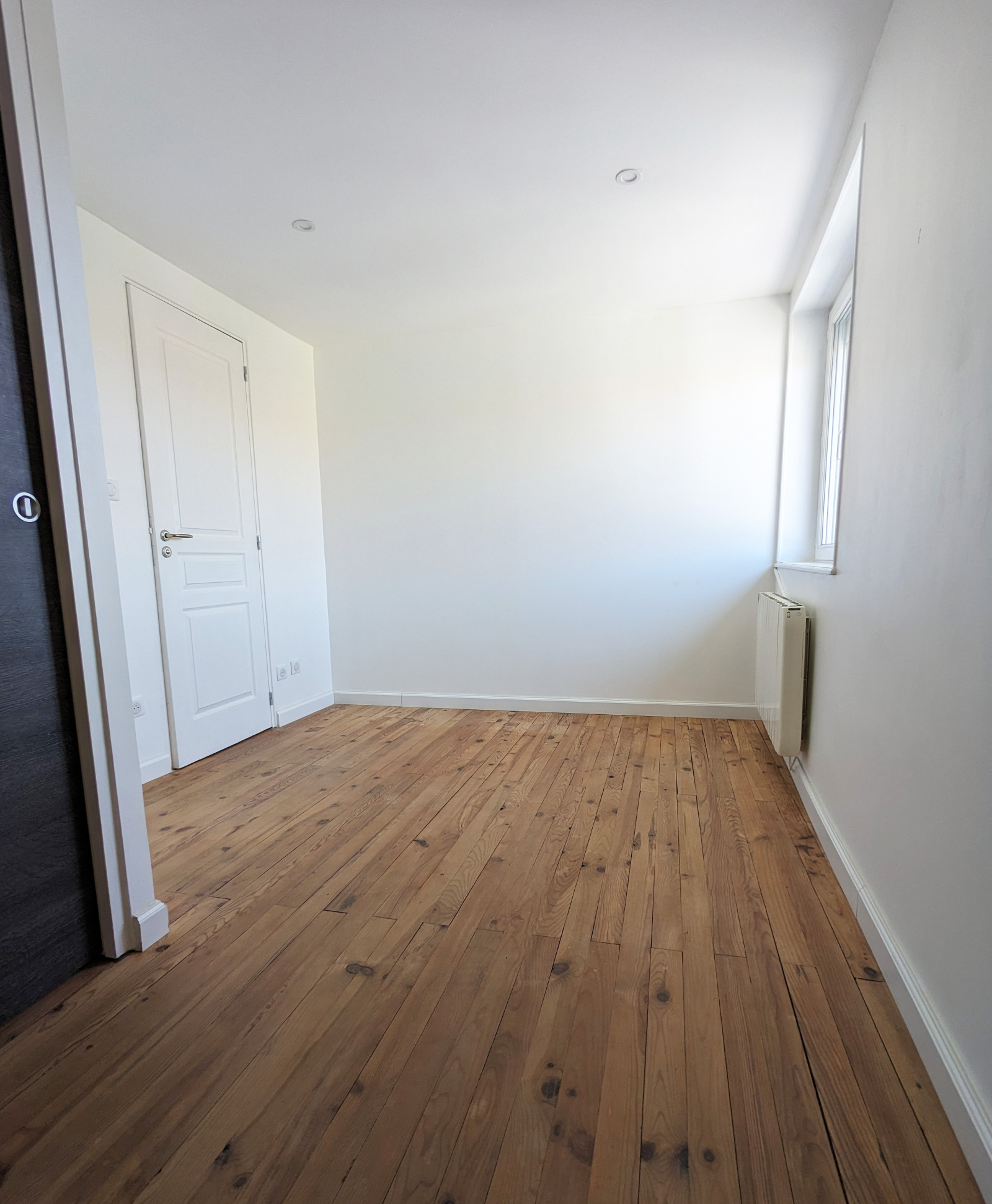 L’étage offre 2 chambres dont l’une avec grand dressing, une salle d’eau avec douche à l’italienne, emplacement machine à laver et un second cabinet de toilettes.