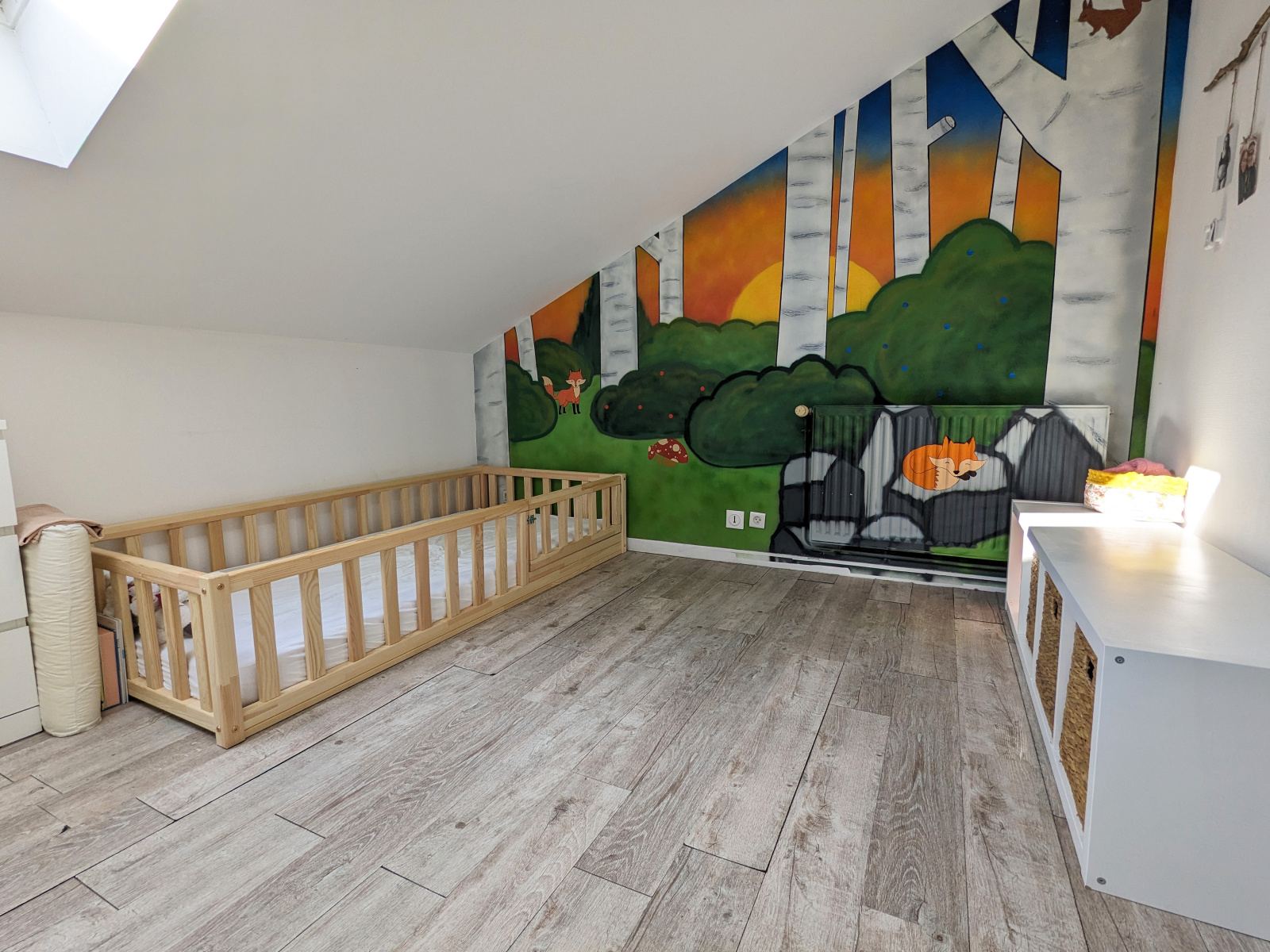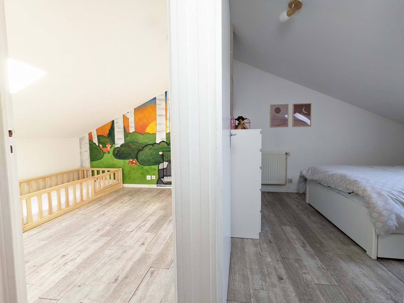 L’étage accessible par un bel escalier bois, vous propose 2 chambres parfaitement isolées et lumineuse.