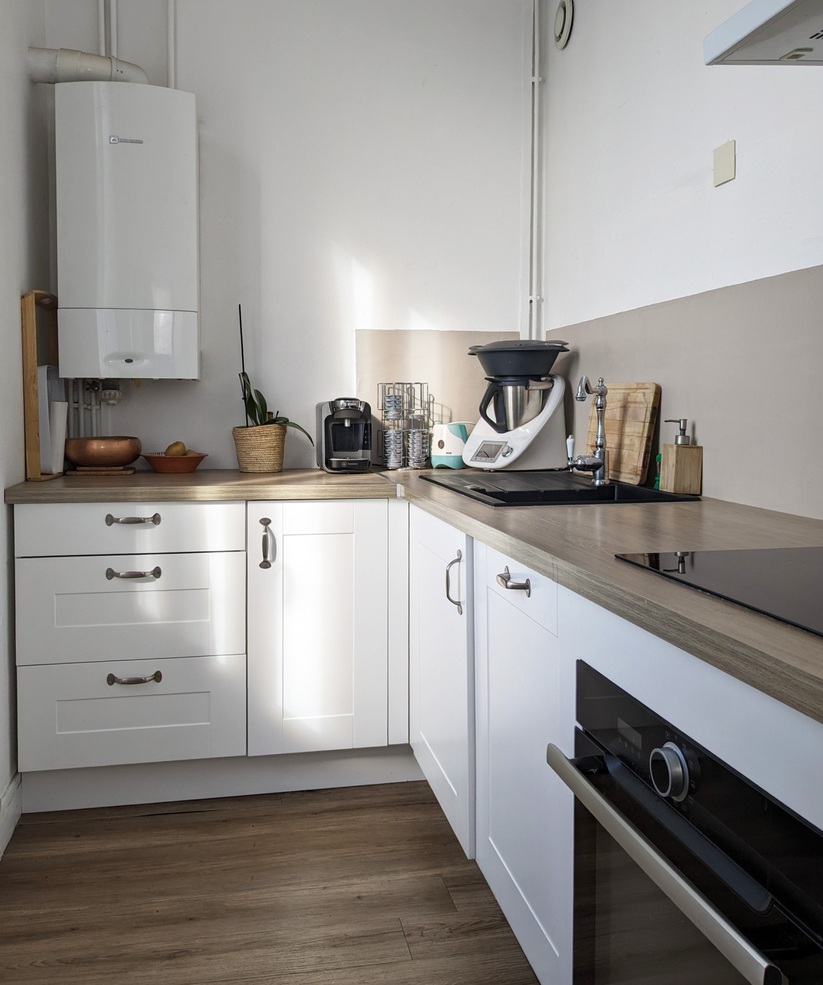 Chauffage et eau chaude par chaudière gaz individuelle récente.