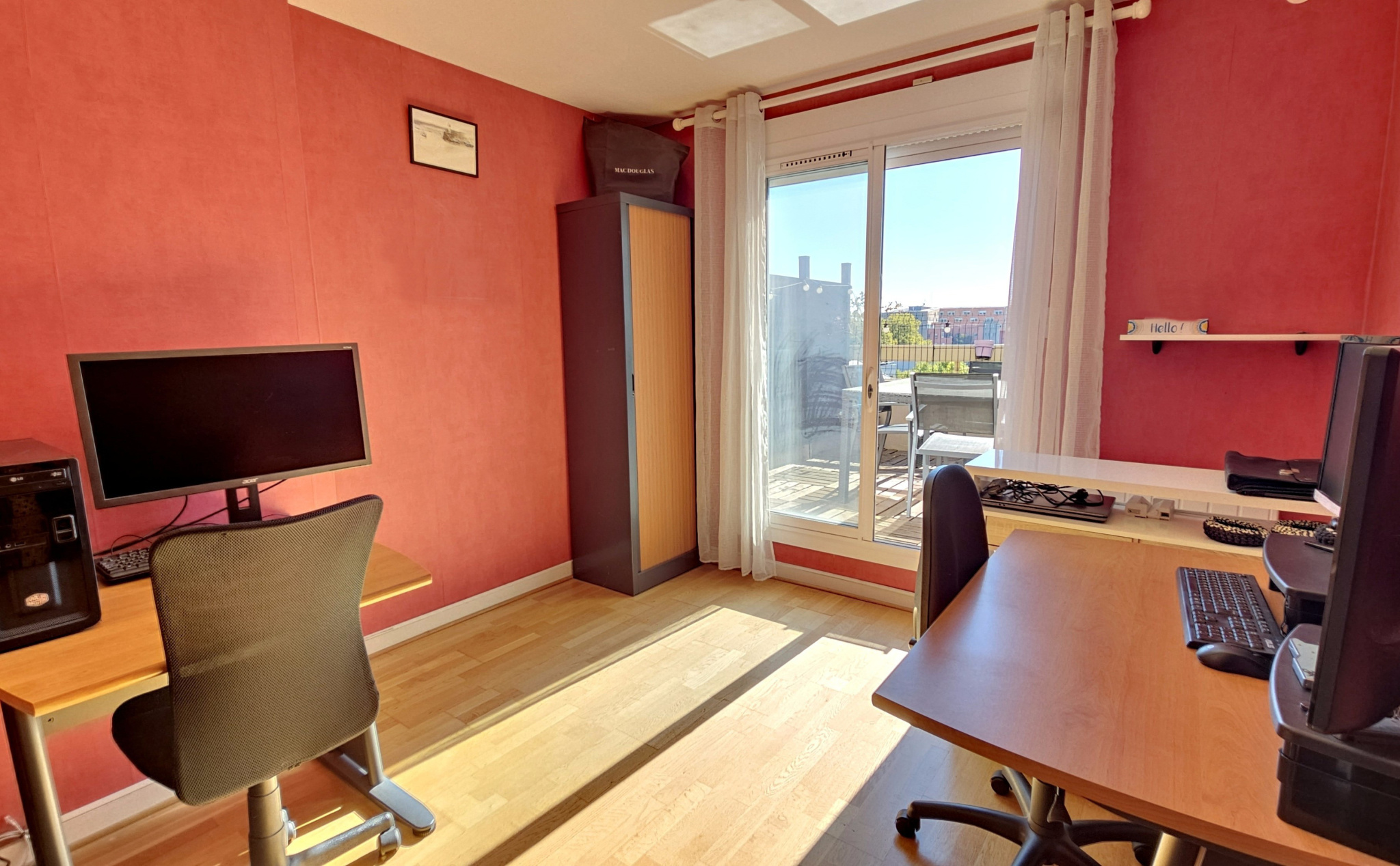Côté nuit, l’espace parental à l’Est, accueille une chambre de plus de 22 m², une vaste salle d’eau avec buanderie, des toilettes et un bureau de près de 13 m² ouvrant sur l’une des terrasses.