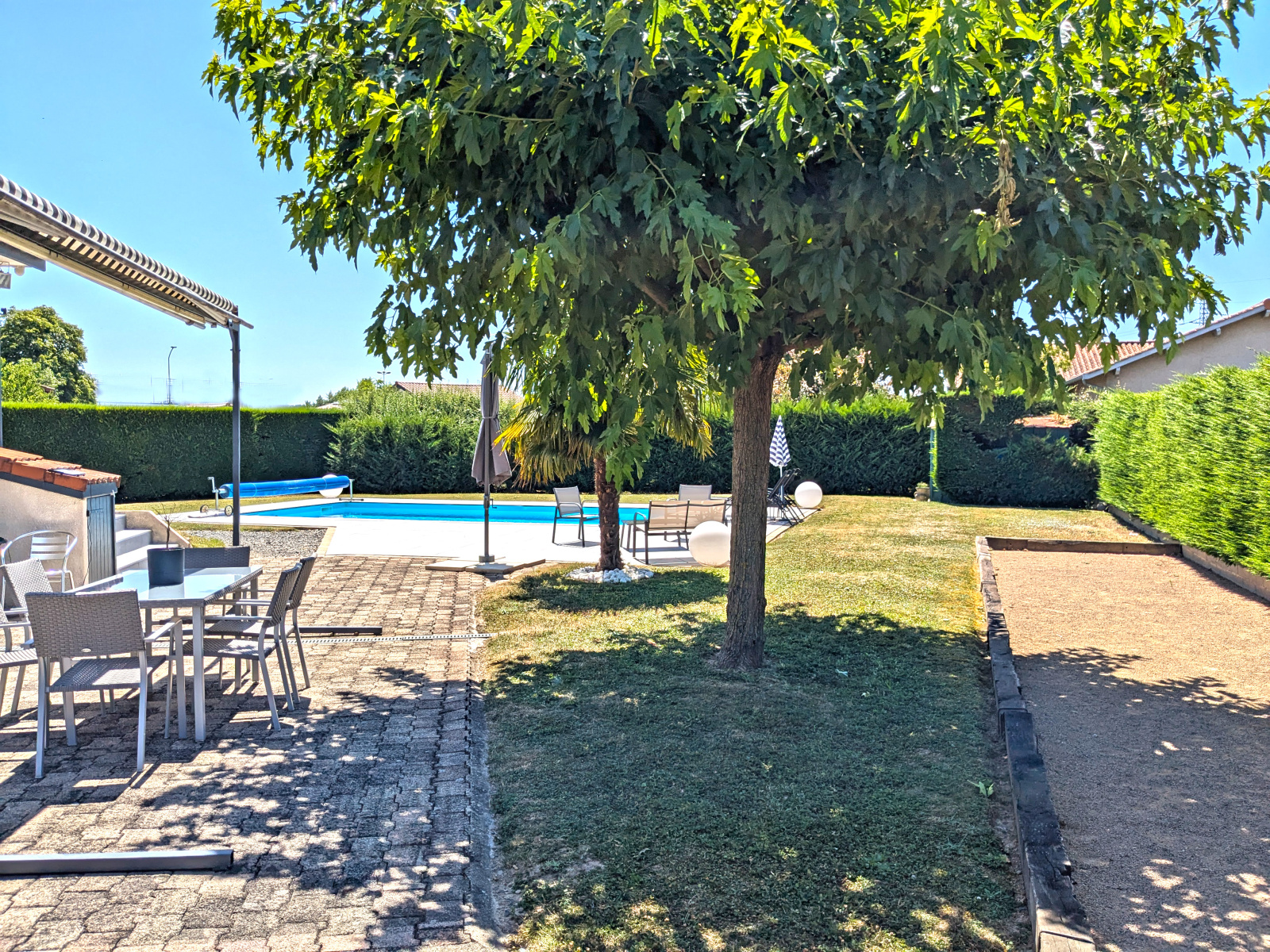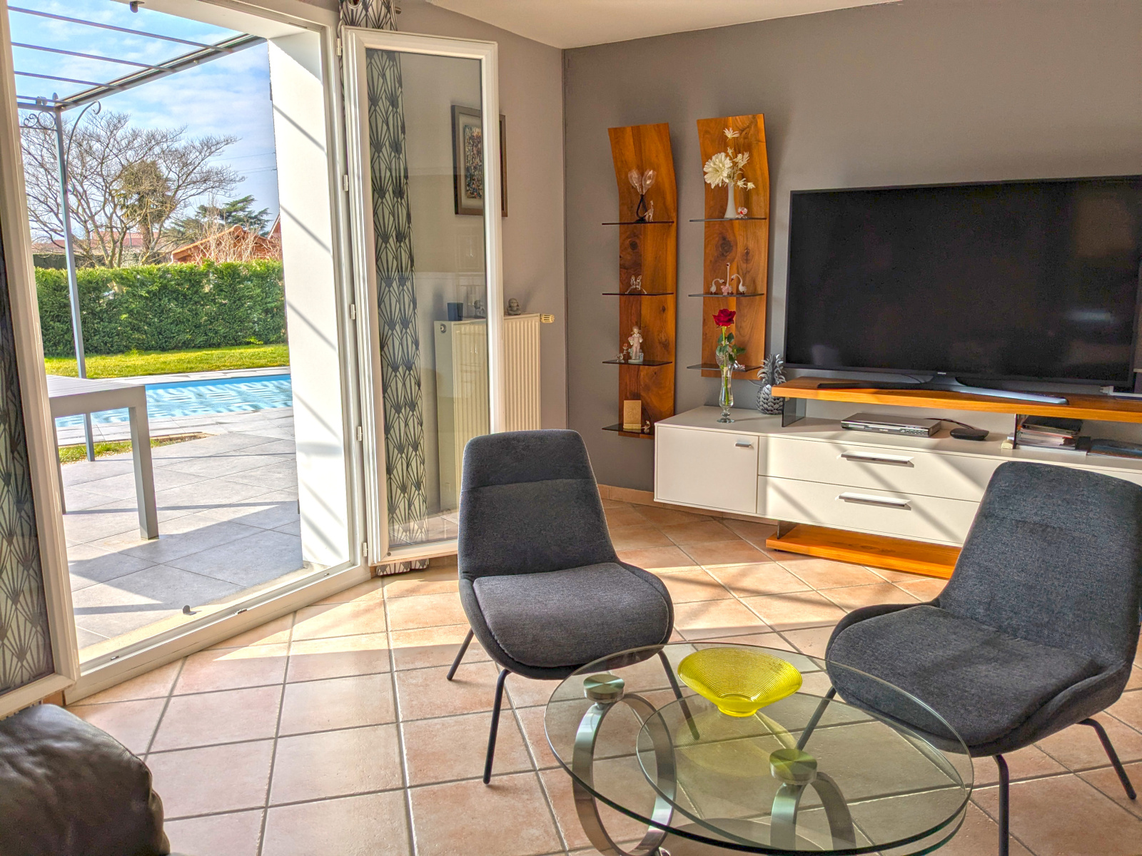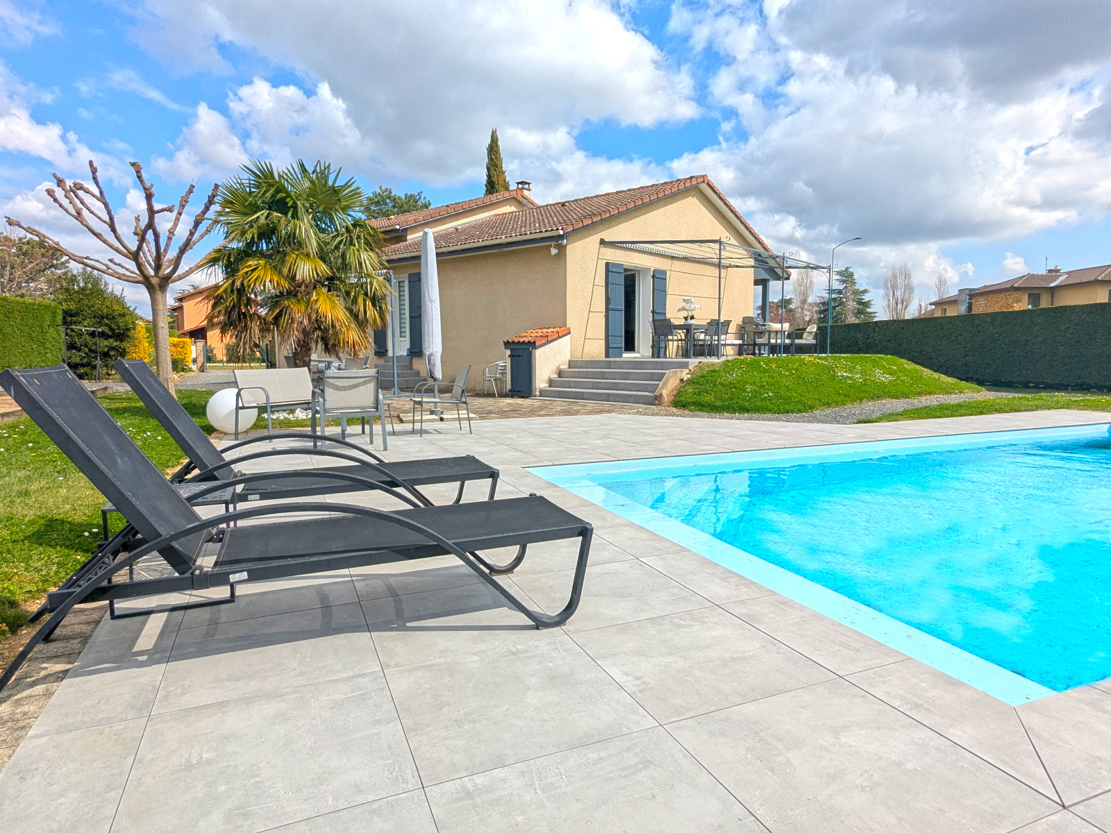 Chazay d’Azergues, au sein d’un quartier résidentiel et prisé de Chazay d’Azergues, villa familiale de 162 m² sur une parcelle plate entièrement close et arborée de 1640 m² avec piscine.