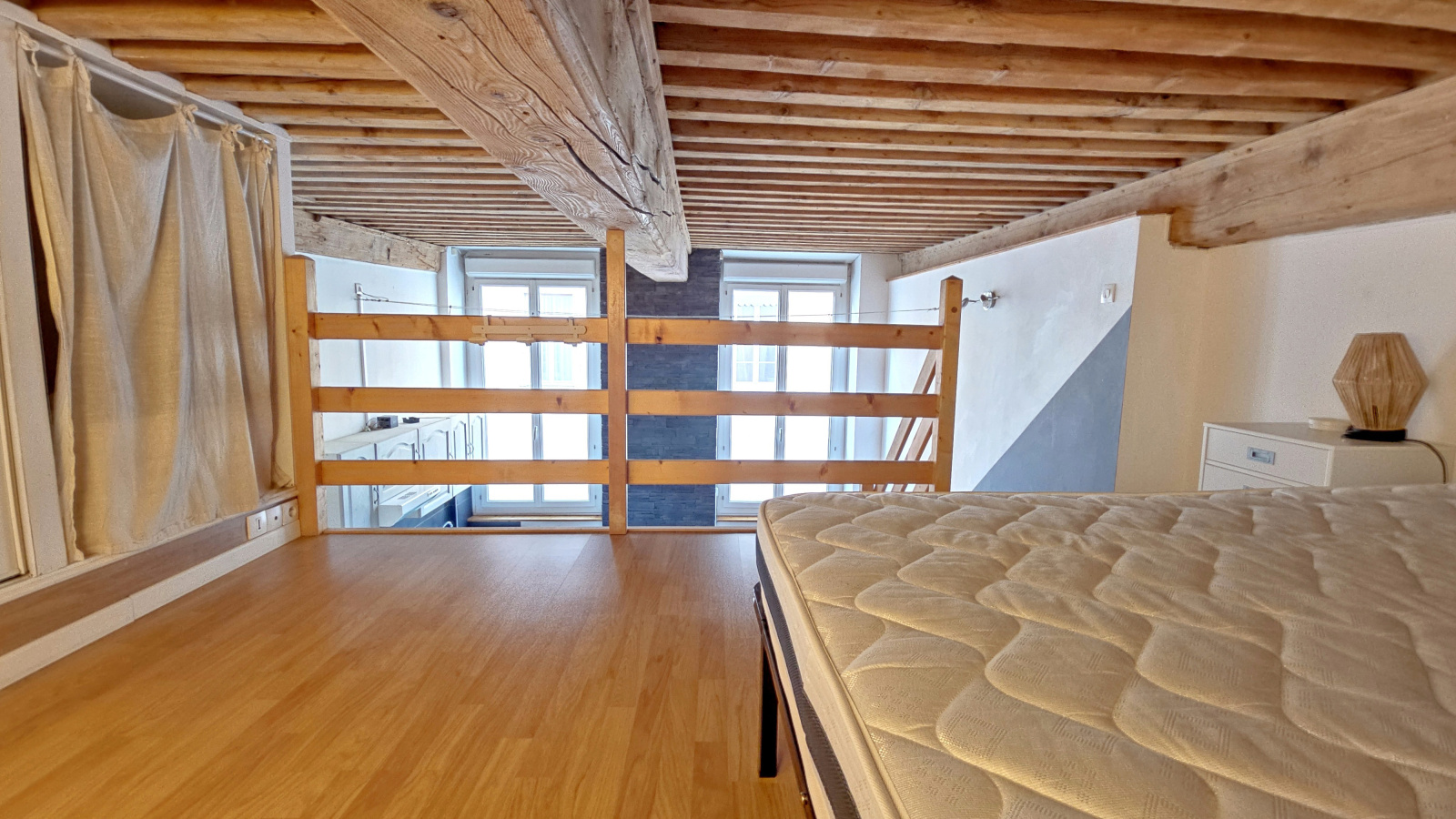 L’espace nuit en mezzanine, vous offre plus de 13 m² au sol avec placards.