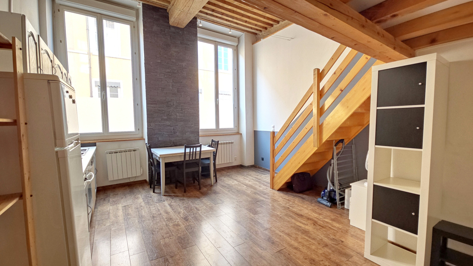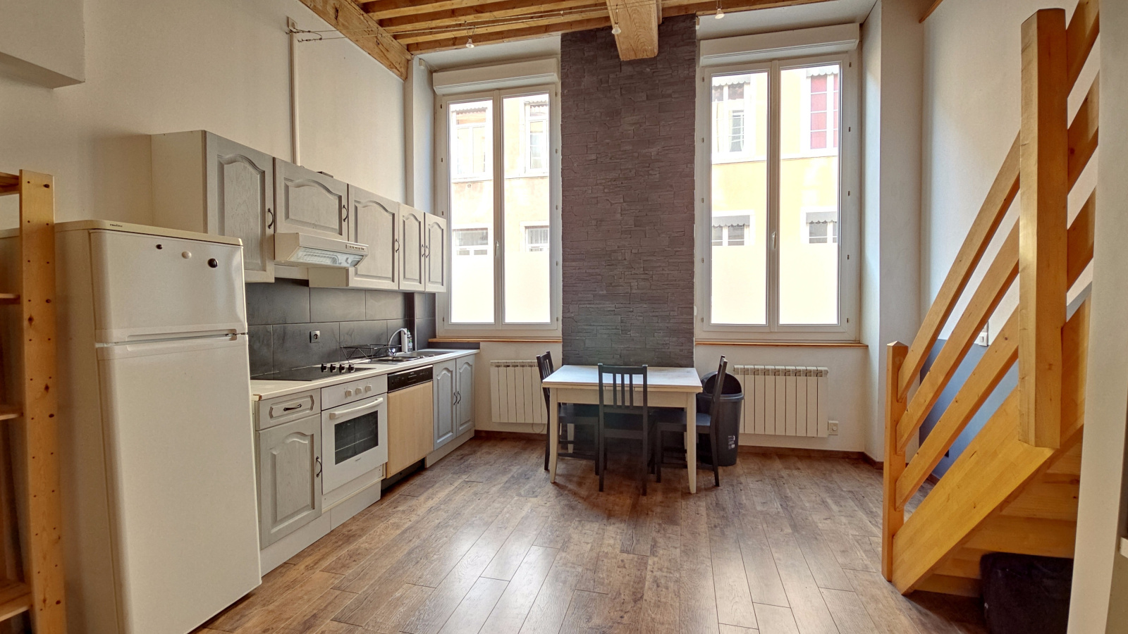 - Le charme d’un canut, avec ses volumes généreux et ses plafonds à la française,